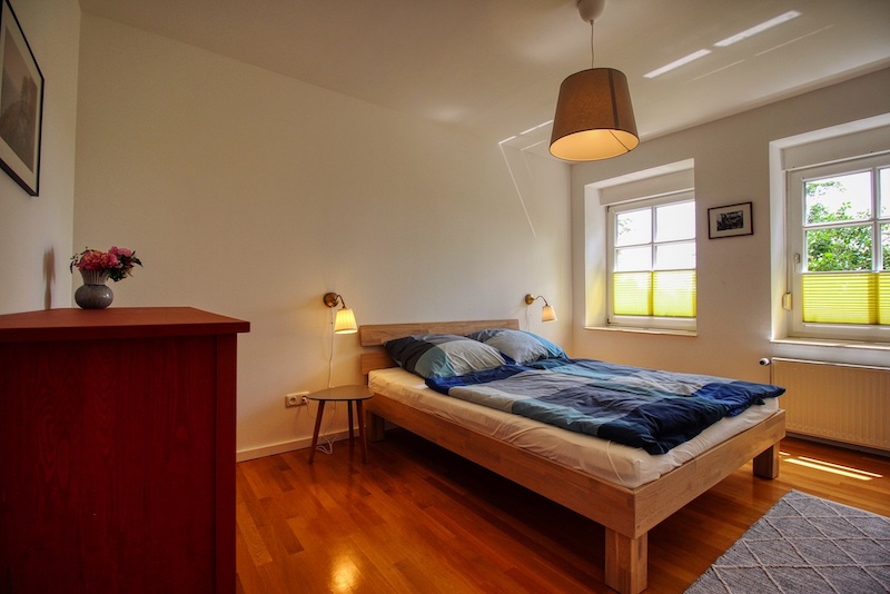 Die Wohnung liegt im Erdgeschoss des alten Fischerhauses, hat eine eigene Terrasse sowie einen eigenen Eingang und ist mit ihren 2 Schlafzimmer für bis zu 4 Personen geeignet. Die große Terrasse erlaubt es auf kurzem Weg draußen zu frühstücken und die erste Tasse Kaffee oder Tee in der Natur zu genießen. Lust auf einen frisch gepflückten Apfel oder ein paar Himbeeren zum Frühstück? Bitte, bedien Dich im Garten!